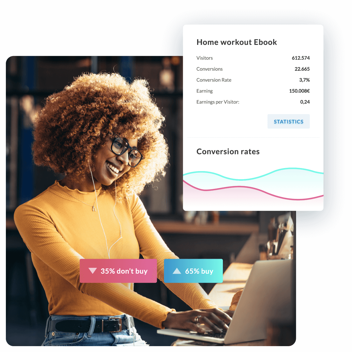 Make your work easier. With Digistore24, you don't just set up high-converting sales processes. You also get the best tools in the industry. With the Conversion Cockpit you test and optimize your sales funnel. With the Business Cockpit you increase your customer value and always keep an eye on the most important figures of your business.